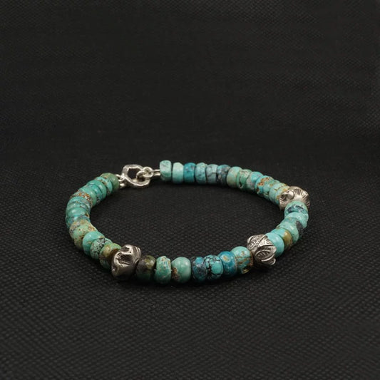 Handmade Raw Turquoise & Ancient Tibetan Silver Bracelet(6-7mm)