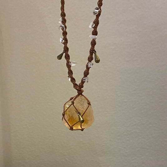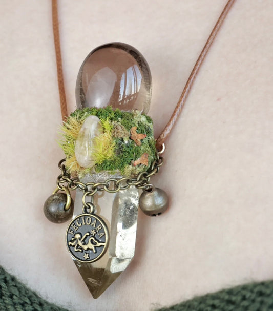 Handcrafted Tibetan Mystique: Natural Smoky Quartz Citrine Wand Necklace