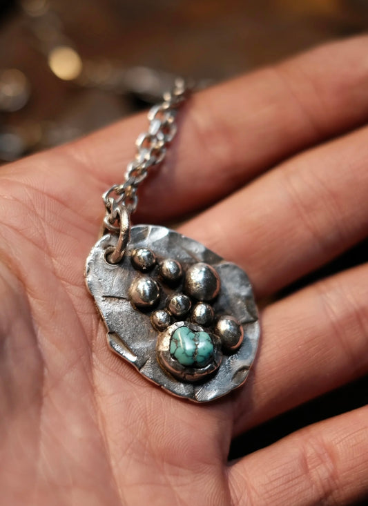 Handcrafted Tibetan Turquoise Sterling Silver Pendant Necklace