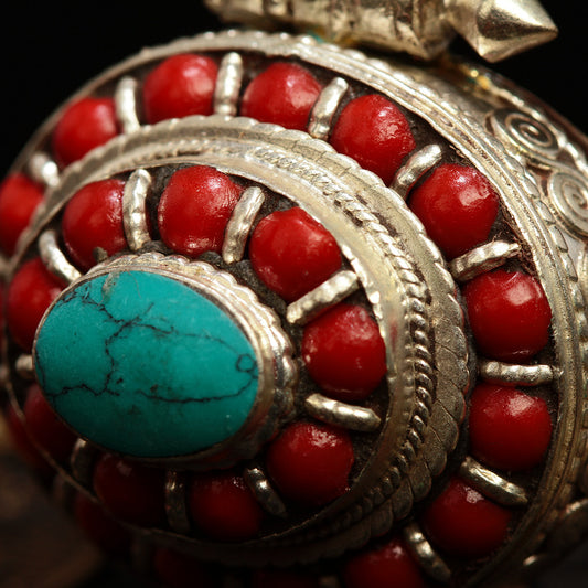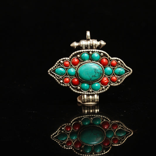 Handcrafted Tibetan Turquoise Silver Pendant(GaWu Box) Necklace