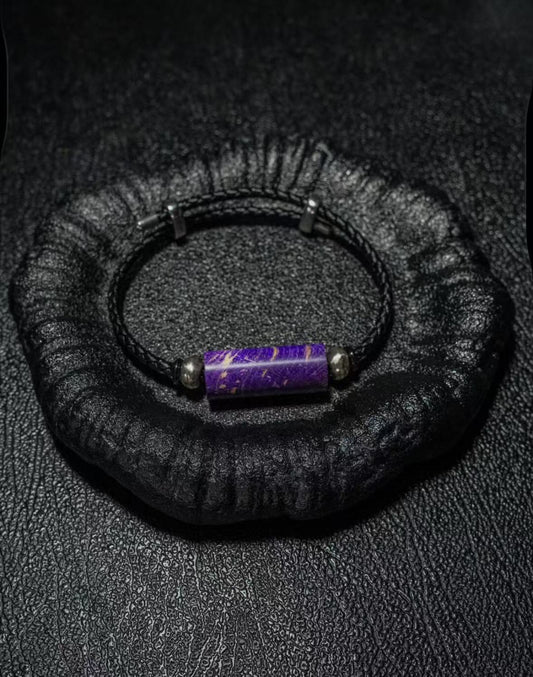 Simplistic Tibetan Dzi Bead Purple Cord Bracelet