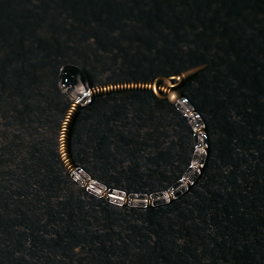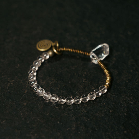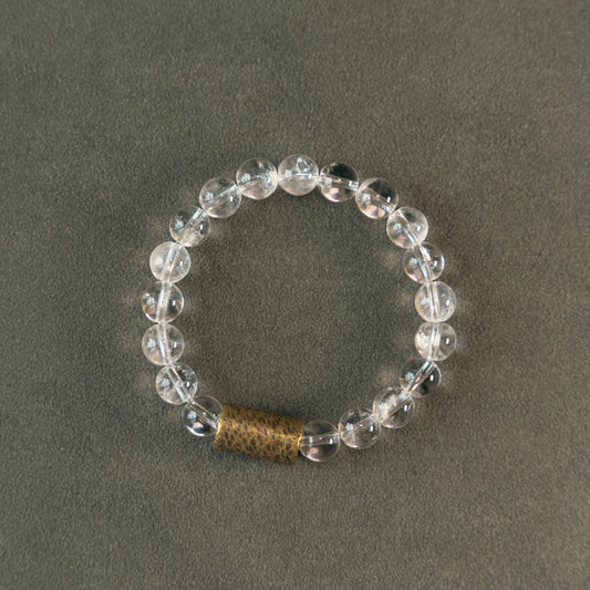 Tibetan Clear Crystal Quartz with Brass Bracelet– Elegance in Harmony Ⅱ