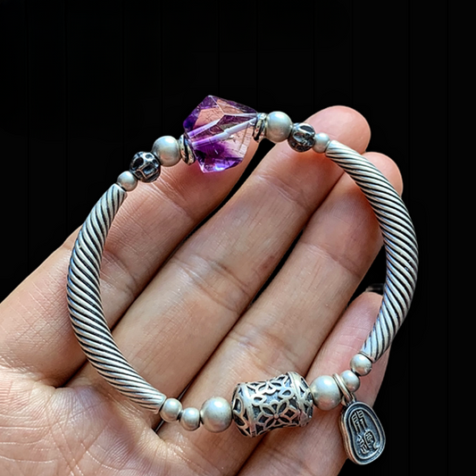 Tibetan Amethyst & Clear Crystal Healing Bracelet