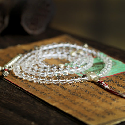 Tibetan 108 Clear Quartz Mala Bracelet(Necklace)