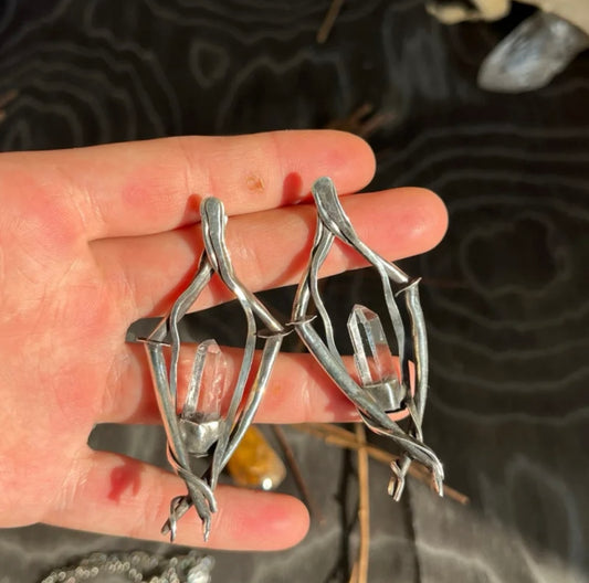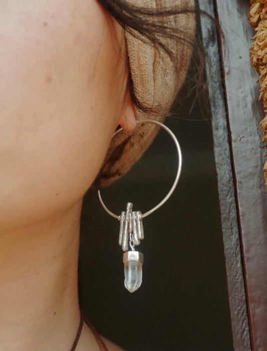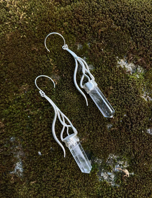 Tibetan Handcrafted Himalayan Clear Quartz Earrings – 925 Sterling Silver Sacred Flow