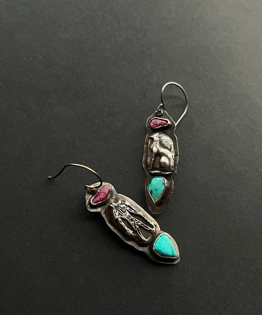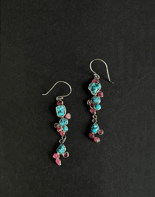 Tibetan Turquoise & Spinel Dangle Earrings