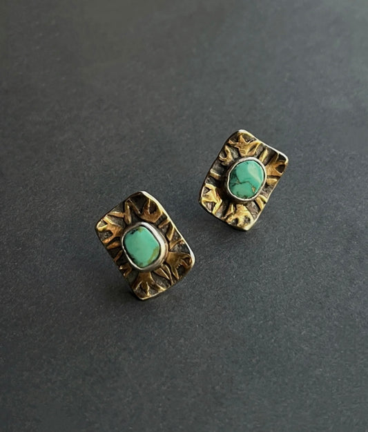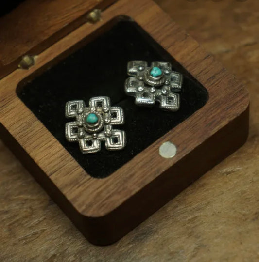 Tibetan Handcrafted Turquoise Stud Earrings