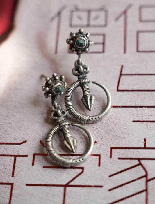 Tibetan Auspicious Guardian Earrings With Sterling Silver