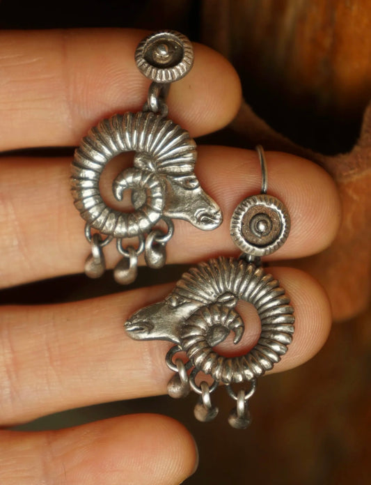 Tibetan Antelope Head Silver Dangle Earrings