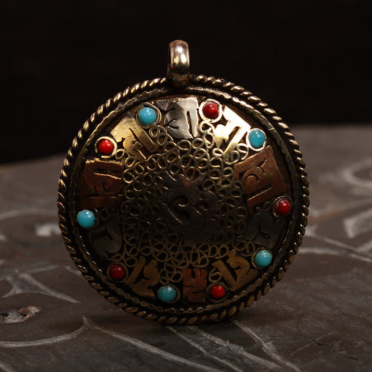 Handcrafted Tibetan Turquoise Silver Pendant(GaWu Box) Necklace