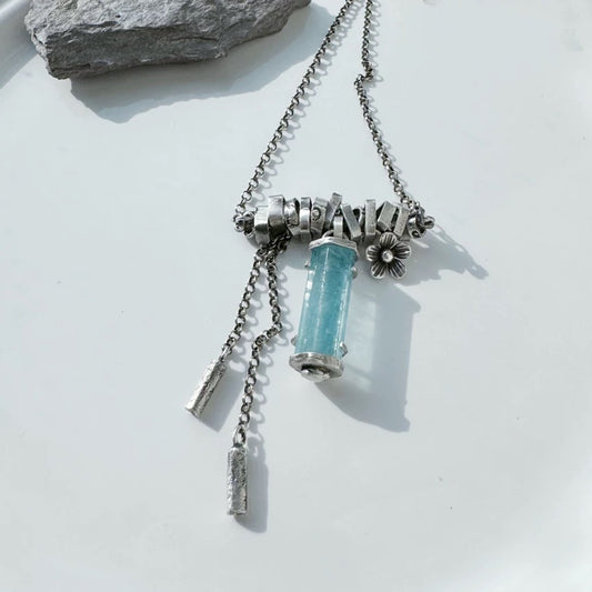 Purifying & Calming Aquamarine Pillar 925 Sterling Silver Necklace