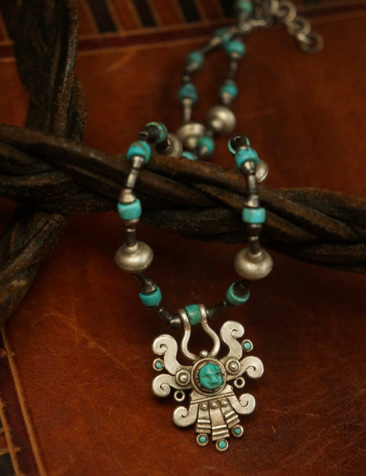 Luck & Protection Tibetan 925 Silver Turquoise Necklace