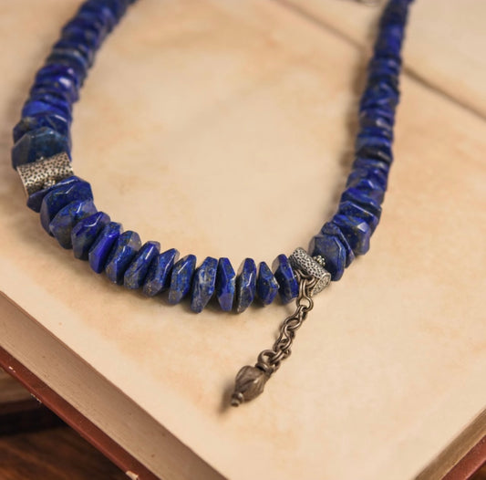 Tibetan style old mine lapis lazuli paired with 925 Sterling silver necklace